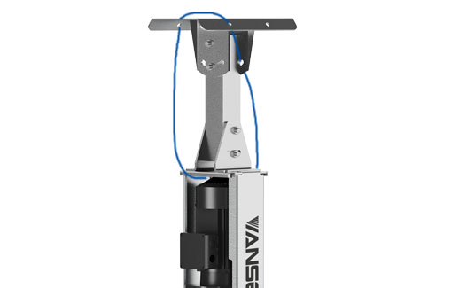 四根鋼絲繩利用平衡原理與建筑物牽引固定,防止風扇整機受外力及氣流作用晃動及墜落。